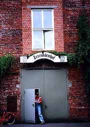 | JEFF BECK 2001 EUROPE TOUR REPORT Nurnberg Serenadenhof 2001.07.09 前日からの風邪が治りきってなくて、熱があるので午前中はだらだら…突如、ぱぉ〜〜ん!!っと前世紀の生き物の咆哮のような音が…蒸気機関車? ドイツは鉄道大国と聞いていたけれど、蒸気機関車までまだ走らせていたようです。鉄道マニアが泣いて喜びそう。 ちえx さんは下見と観光を午前中に済まして昼頃戻ってきた。私も時差のせいかどっちにしても眠れないし熱が下がってきたのでニュルンベルク観光コースをちょっと見に行く。 第二次世界大戦で80%以上街が崩壊したのを復元しているためか、ミョーな新しさがあって、ハウステンボスみたいなの(本物のヨーロッパなのにね) 4 : 00頃会場に到着。町外れの街道沿いに古い競技場跡(何となくナチ時代のもののような気が…)があり、会場らしきドアがそのアリーナの隣に見える。オーディエンスの入り口と機材搬入口が一緒になってるらしい。 30分も待たないうちにジェニファー、ランディ、アンディが『VIP-SHUTTLE』と書かれた車で到着。 団扇を差し出すとみんな面白がって、大喜び。団扇は2種類作ってあって、クルー用に「JEFF